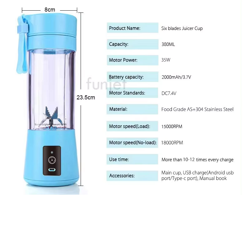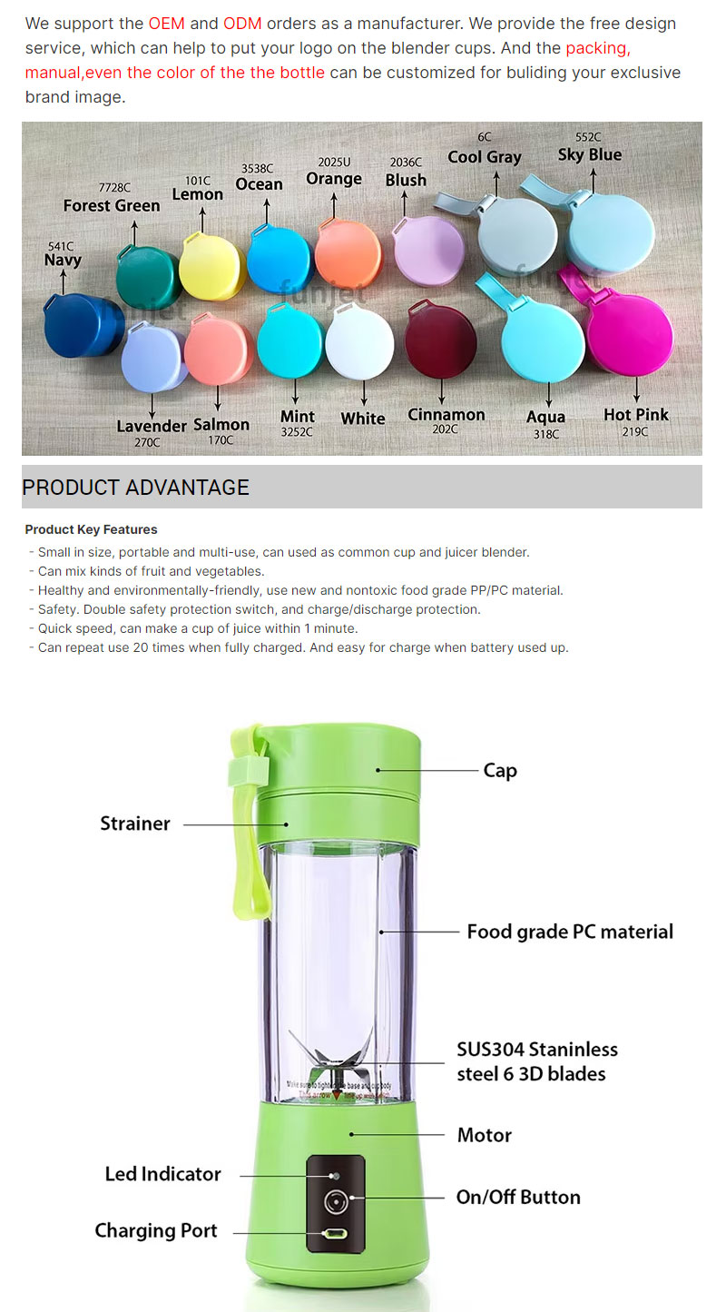 ๐จ๐ฆ๐ ๐ฅ๐ฒ๐ฐ๐ต๐ฎ๐ฟ๐ด๐ฒ๐ฎ๐ฏ๐น๐ฒ:Portable blender built-in USB battery pack can be easily charged by power bank,computer or other USB power source. The USB rechargeable portable blender equipped with a built-in rechargeable battery makes 8-12 cups per charge.