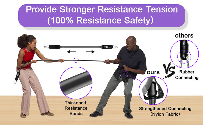 【All in 1-Full Body Workout】- The workout equipment could help shape body,training muscles,etc. You can put these 2 kinds of resistance bands together on each side,if you want to increase the intensity of tension. Also,you can use the same weight resistant bands,attached to each side for light weight resistance. The 3 detachable steel rod could be assemble to the length when you training