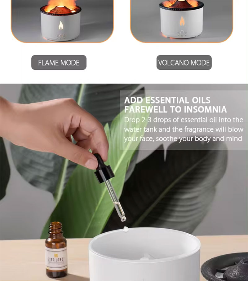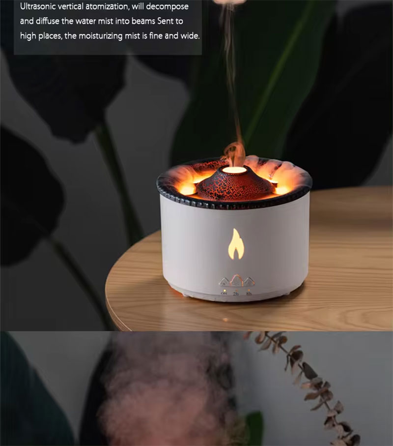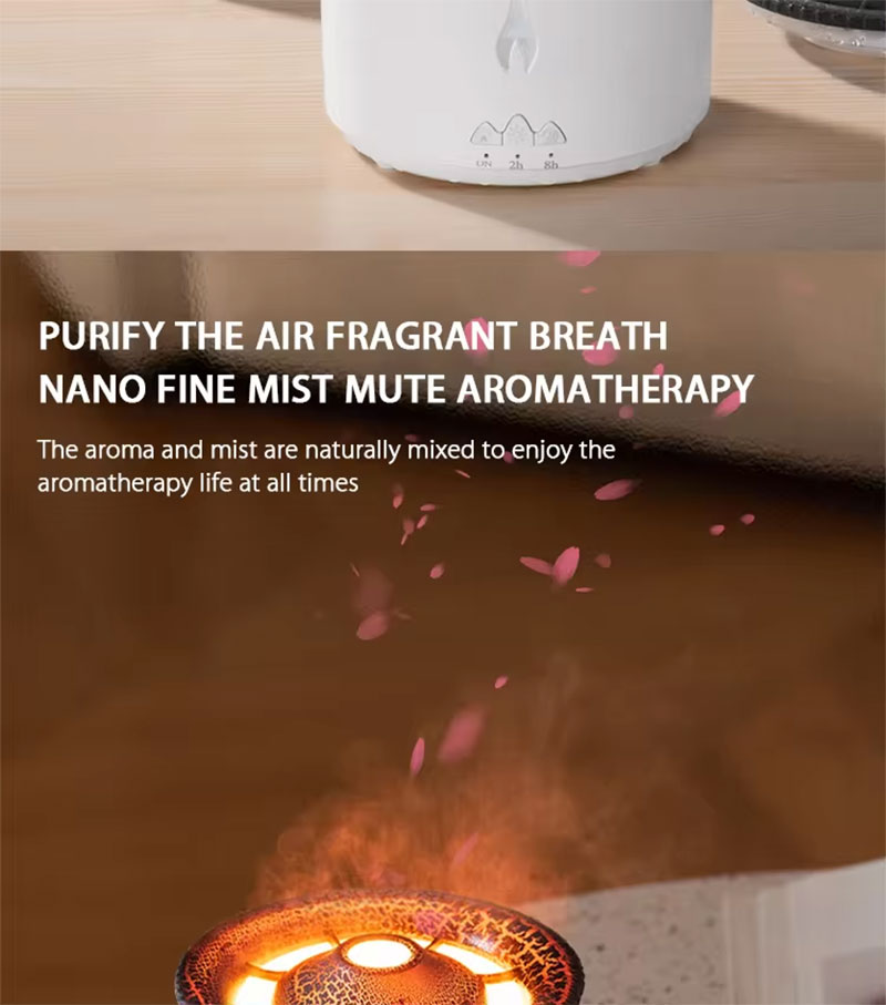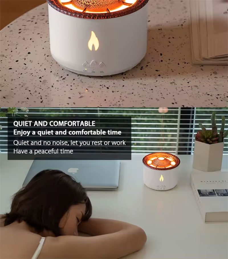 [Ultra-quiet & Intelligent Timing] Our diffuser volcano flame has a 30dB ultra-quiet operating environment. A built-in smart chip you can set the timer to 2H or 8H and activate an automatic shutdown mode when the water level is too low. Provide security in your life, so you can focus on work or enjoy leisure time in aromatherapy.